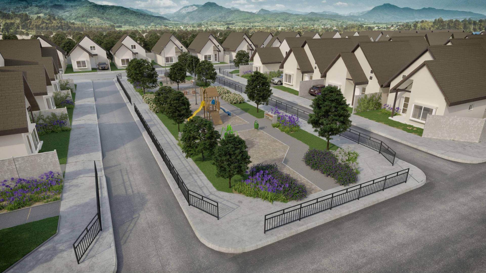 La arquitectura de este proyecto destaca por sus amplios, cálidos y luminosos espacios para compartir, sus pisos de porcelanato y ventanas de PVC, ventilación convectiva y revestimientos térmicos, además de sus cocinas completamente amuebladas y equipadas con horno, encimera y campana, además de sus variadas áreas verdes, equipadas con juegos infantiles.