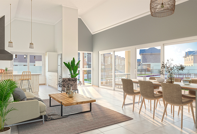 Junto a su diseño funcional, tu casa cuenta con revestimiento térmico y ventanas de PVC que generan un mayor confort térmico al interior y uso energético más eficiente.