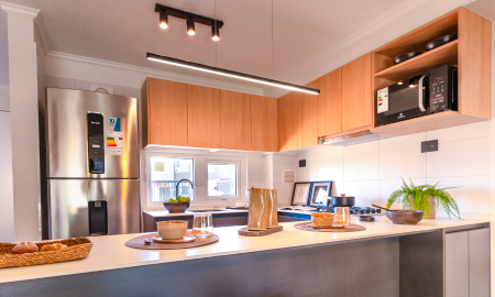 Descubre los increíbles espacios de tu nuevo hogar, con un amplio y luminoso living-comedor. Cocina cerrada o integrada según modelo, con comedor de diario y cubierta de porcelanato, para que puedas disfrutar de las mejores preparaciones.